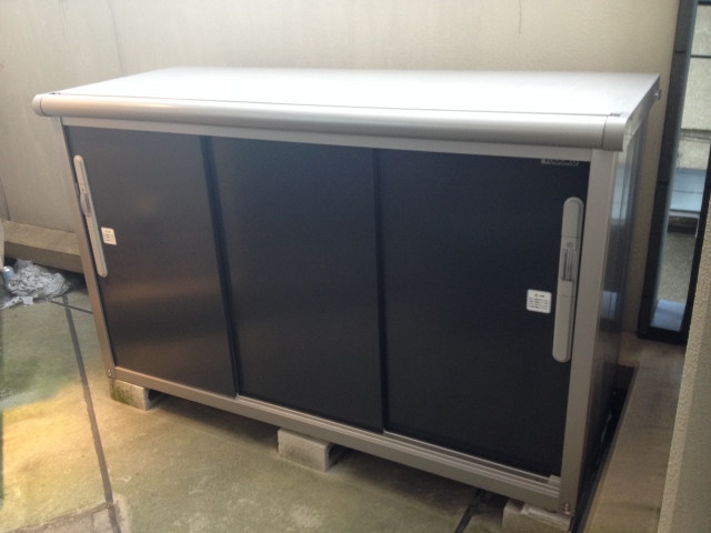ベランダ上に収納ボックスを配置することで、